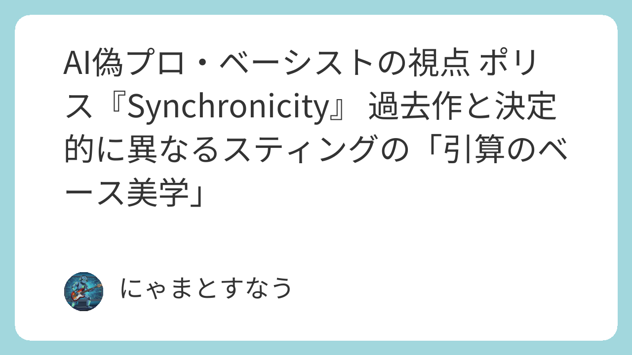 - 『シンクロニシティー』: ベースは、ドラムやギターとの摩擦を最小限に抑え、シンプルで安定した土台を提供することに徹しています。
